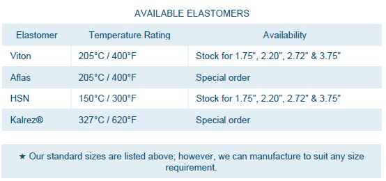 - Optional elements for sour-service and high temperatures include: proprietary HSN (Highly Saturated Nitrile), Viton, and Aflas.